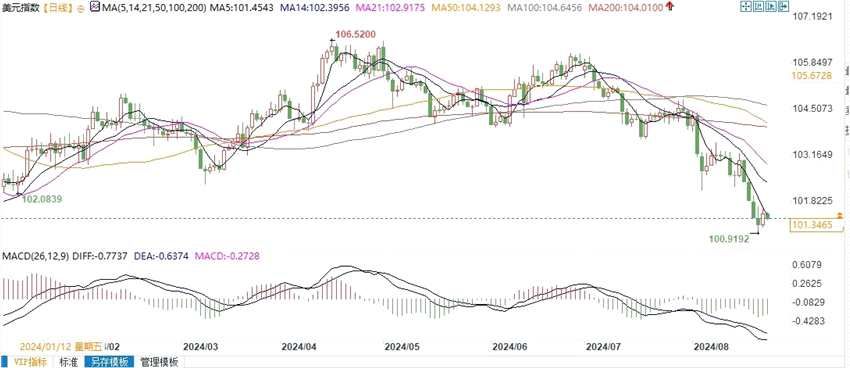 美元指数日线图北京时间8月23日13:20,美元指数报101.34