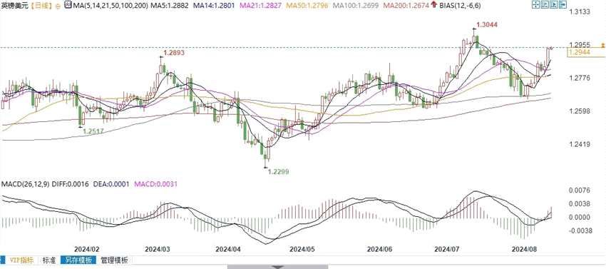 英镑兑美元日线图北京时间8月19日9:17,英镑兑美元报1.2943/44